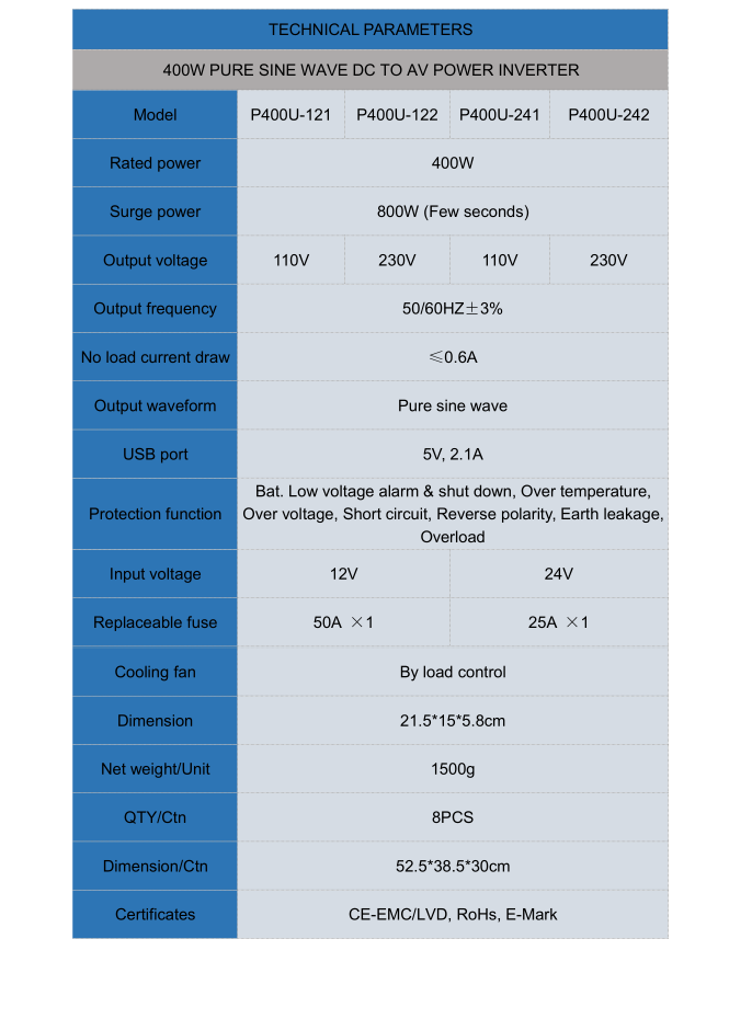 400W yakachena Sine Wave Wave DC to AC Simba Inverter
